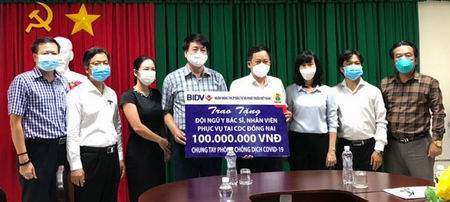 (Chinhphu.vn) – Vừa qua, các chi nhánh BIDV trên địa bàn tỉnh Đồng Nai đã phối hợp tổ chức trao cho đại diện Trung tâm Kiểm soát bệnh tật của tỉnh (CDC Đồng Nai) số tiền 100 triệu đồng để hỗ trợ đội ngũ y bác sỹ, cán bộ y tế trong công tác phòng chống dịch COVID-19.