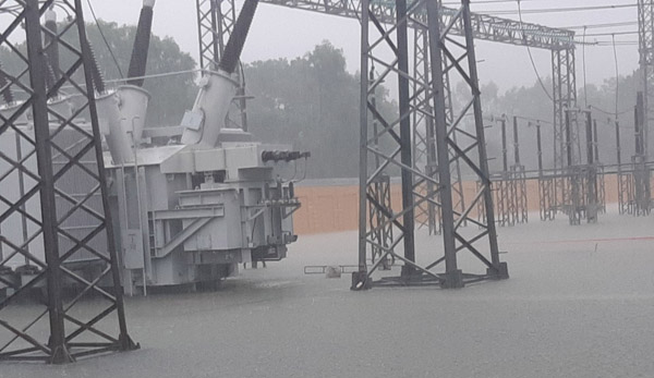 Do lượng mưa quá lớn, nước từ phía ngoài trạm dâng cao nhanh, tràn vào, làm ngập sân phân phối ngoài trời trạm biến áp (TBA) 220kV Huế khoảng 0,7-0,9 m, nguy cơ gây mất an toàn cho các thiết bị của trạm.