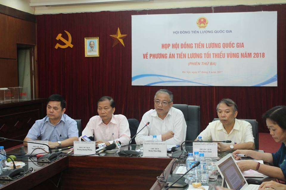 Chủ tịch Hội đồng Tiền lương quốc gia, Thứ trưởng Bộ LĐTB&XH Doãn Mậu Diệp cho biết: “Tại cuộc họp lần thứ 3, sau nhiều tranh luận của các bên, chúng tôi đã tìm ra sự thống nhất mức đề xuất tăng lương tối thiểu vùng năm 2018 là 6,5%. Đây là kết quả của cuộc bỏ phiếu của Hội đồng Tiền lương quốc gia. Căn cứ vào mức đề xuất này, Hội đồng sẽ làm báo cáo gửi Thủ tướng Chính phủ xem xét và ban hành Nghị định tăng lương tối thiểu vùng năm 2018 thời gian tới”.