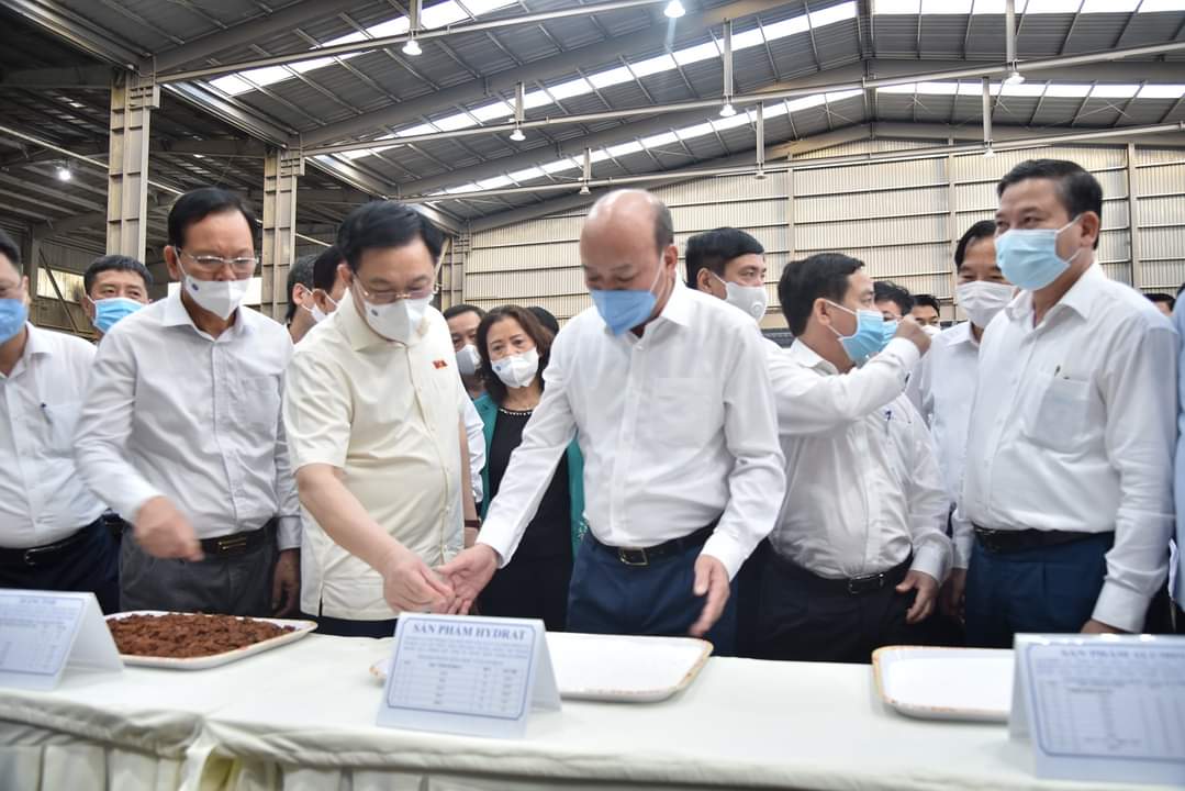 Chủ tịch Quốc hội Vương Đình Huệ ghi nhận những kết quả đã đạt được của 2 dự án thí điểm khai thác bauxite, sản xuất alumin của TKV thời gian qua.