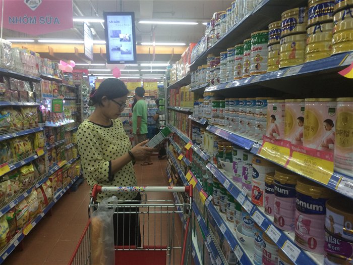 | Người tiêu dùng tham khảo sản phẩm sữa tại một siêu thị ở TPHCM. |