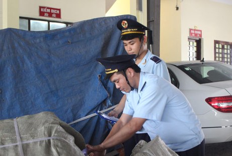 | Công chức Chi cục Hải quan cửa khẩu Móng Cái (Cục Hải quan Quảng Ninh) kiểm tra hàng hóa XNK. |