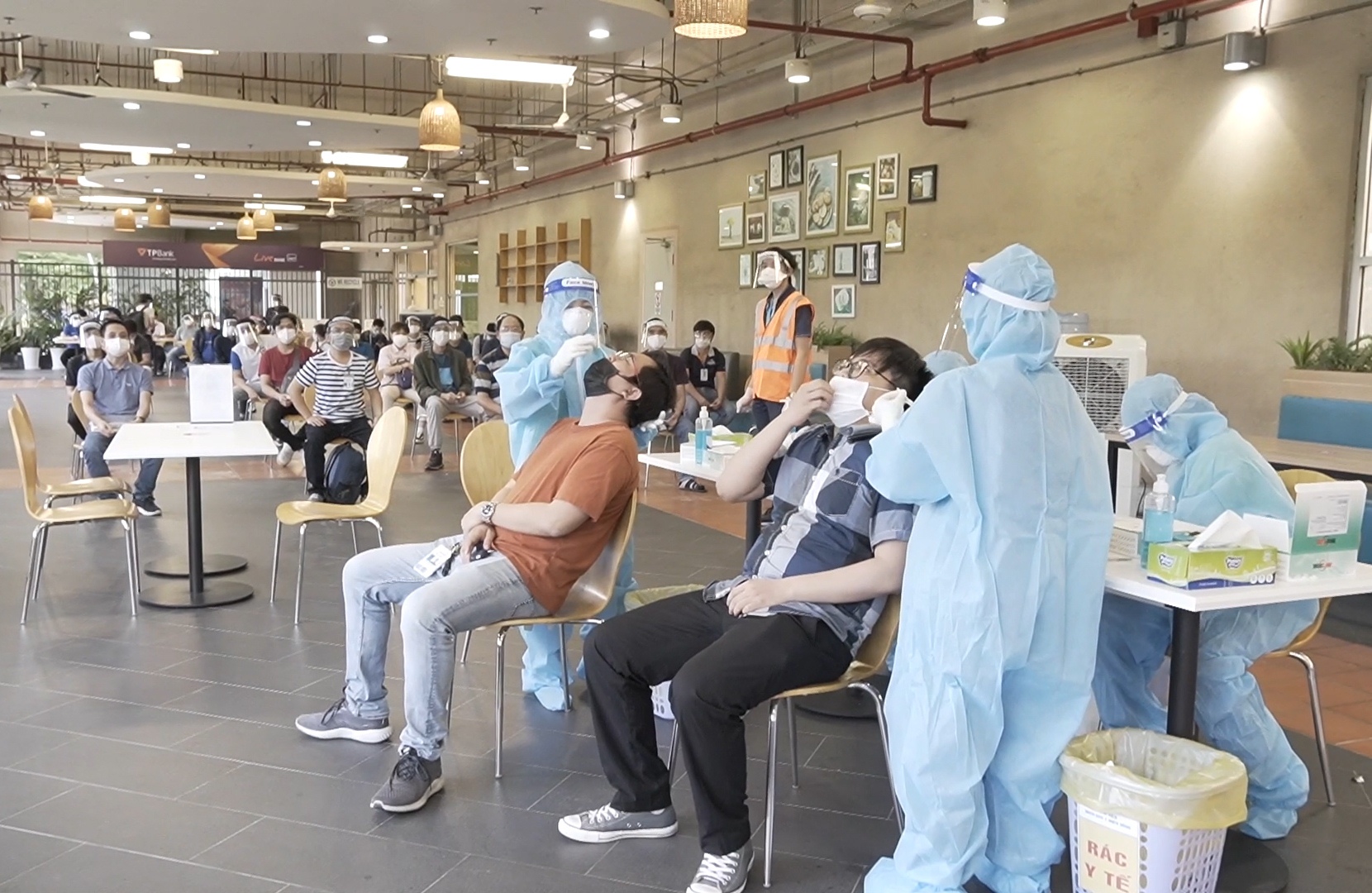 Xét nghiệm sàng lọc định kỳ, cho phép phát hiện ca nhiễm để cách ly khoanh vùng kịp thời là 1 trong 2 giải pháp nhằm kiểm soát dịch của các DN trong Khu CNC TPHCM. |