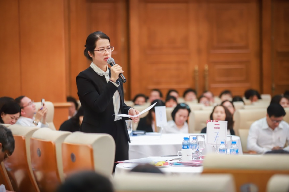 | Phó Tổng Giám đốc Agribank Nguyễn Thị Phượng phát biểu tại Hội nghị tập huấn công tác tiếp thị và truyền thông cho cán bộ Agribank toàn hệ thống. |