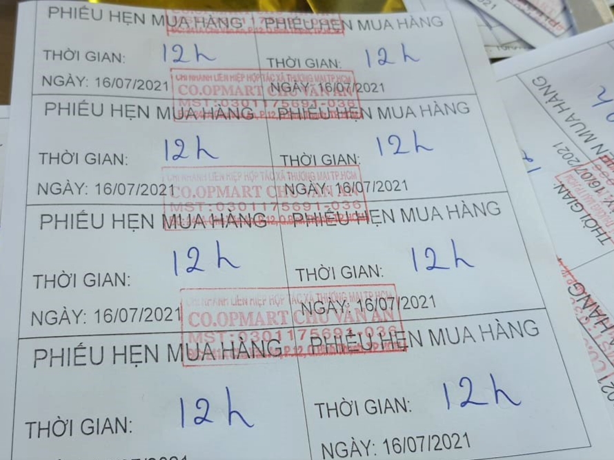 Phát phiếu hẹn giờ đang được Saigon Co.op từng bước áp dụng mở rộng tại các Co.opmart, Co.opXtra, Co.op Food, Co.op Smile khu vực cao điểm để tránh người dân dồn về siêu thị cùng một thời điểm, giảm tối đa hiện tượng tắc nghẽn, lại đảm bảo 5K.