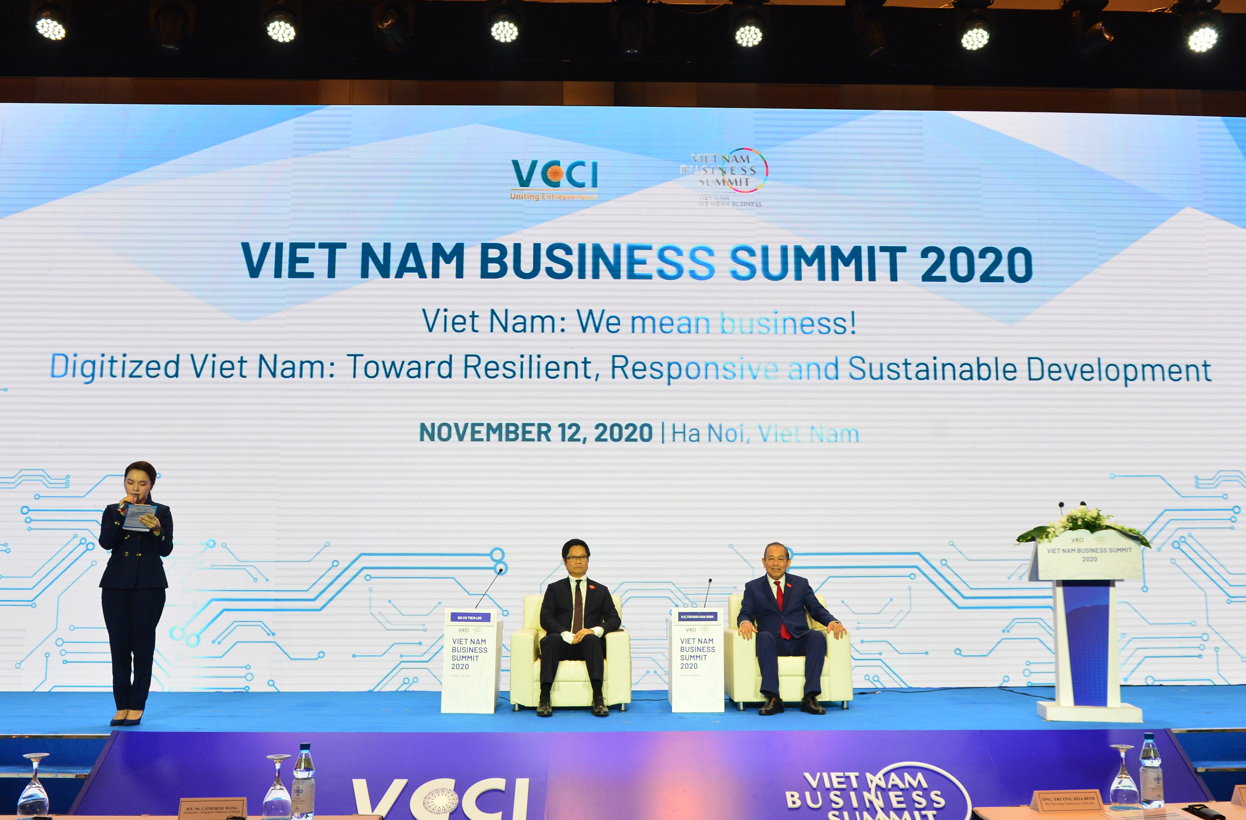 Phát biểu tại Hội nghị, thay mặt Chính phủ Việt Nam, Phó Thủ tướng Thường trực Chính phủ Trương Hoà Bình nhiệt liệt chào mừng quý vị đại biểu và toàn thể lãnh đạo các doanh nghiệp tham dự Hội nghị Thượng đỉnh Kinh doanh Việt Nam năm 2020 với chủ đề "Việt Nam số hóa: Chủ động thích ứng để phát triển bền vững".