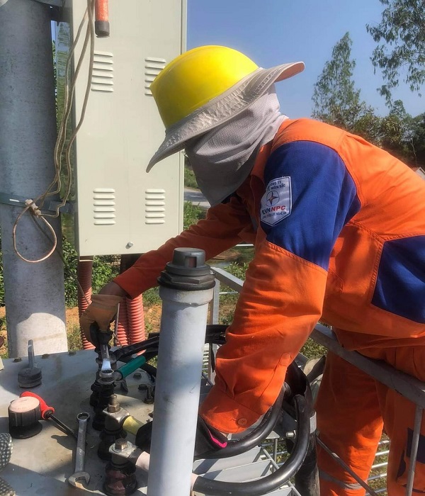 | Công nhân ngành điện miền Bắc căng mình bảo đảm điện trong thời tiết nắng nóng. Ảnh: VGP |