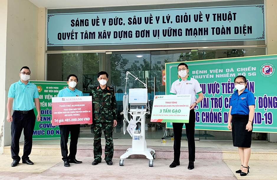 (Chinhphu.vn) - Với tinh thần chung tay cùng đội ngũ y tế và chia sẻ khó khăn của các bệnh nhân COVID-19 tại TPHCM, Đoàn Thanh niên Agribank đã phát động trong cán bộ, đoàn viên và các nhà hảo tâm là cá nhân, tổ chức trong và ngoài Agribank ủng hộ để mua máy thở nhằm góp phần hỗ trợ tích cực công tác điều trị của Bệnh viện dã chiến 5G tại TPHCM.