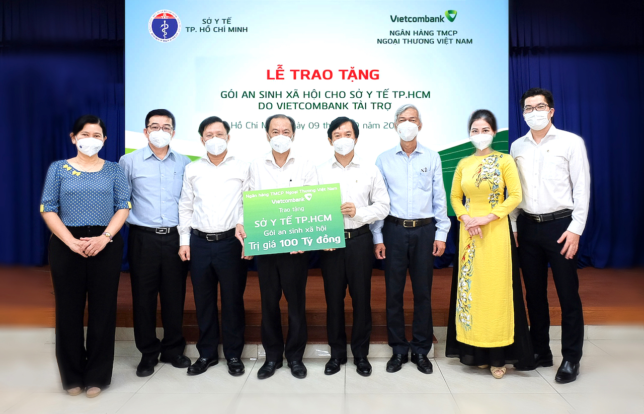 Thay mặt Ban lãnh đạo Vietcombank, ông Đặng Hoài Đức - Uỷ viên BCH Đảng bộ, Bí thư Đảng bộ VPĐD phía nam, Phó Tổng Giám đốc đã trao tặng gói an sinh xã hội trị giá 100 tỷ đồng cho đại diện Sở Y tế TPHCM, góp phần hỗ trợ hơn 40 bệnh viện/cơ sở y tế trên địa bàn Thành phố có thêm nguồn lực trong công tác phòng chống dịch.