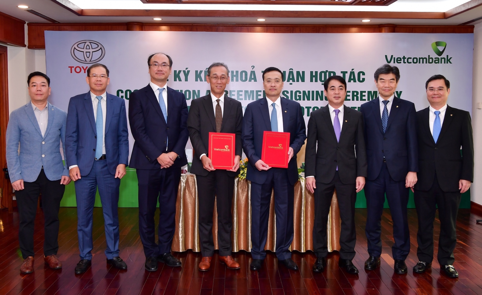 Lễ ký kết Thỏa thuận Hợp tác về tài trợ đại lý giữa Toyota Motor Việt Nam và Vietcombank là một bước tiến lớn trong quan hệ giữa hai bên, theo đó Vietcombank sẽ tài trợ vốn cho hệ thống đại lý cấp 1 của Toyota VN trên toàn quốc. Vietcombank cam kết sẽ luôn cung cấp cho Toyota VN và các nhà đại lý phân phối của hãng các sản phẩm, dịch vụ tốt nhất.